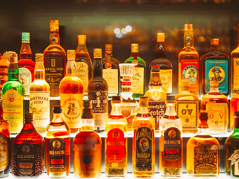 Виски подразделяется на: Шотландский виски (Шотландский виски делится на: серию Macallan; серию Glenfiddich; серию Johnnie Walker; серию Ballantine's; серию Chivas Regal; серию Glenmorangie; серию Matthias, американский виски, канадский виски, ирландский виски.