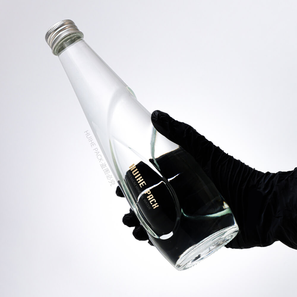 Эта стеклянная бутылка для воды объемом 330 мл имеет гладкую, коническую форму с изящными изогнутыми деталями на корпусе: ее высота составляет 227 мм, диаметр основания 66,4 мм, кристально чистое стекло подчеркивает элегантный, плавный дизайн — идеальное решение для элитных брендов минеральной воды, желающих добавить нотку изысканности в свою упаковку.